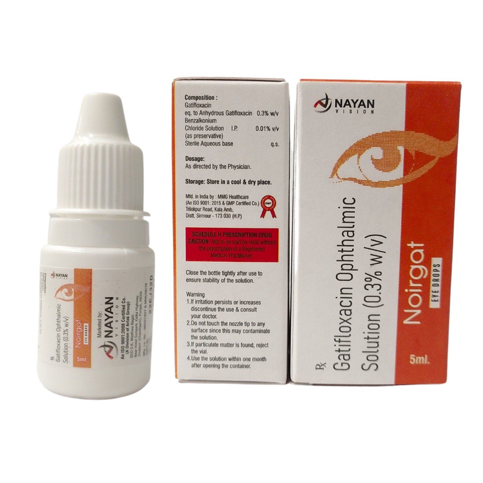 GATIFLOXACIN 0.3% WV EYE DROPS – Now say goodbye to bacterial infections and conjunctivitis with the world-class eye drop delivered by Nayan Vision. You can find this amazing product at Nayan Vision by the brand name “NOIRGAT”. It is helpful in the treatment of bacterial conjunctivitis, bacterial infections, pinkeye, etc. in adults and 1 or more year old children. GATIFLOXACIN belongs to the class of antibiotics known as fluoroquinolone.